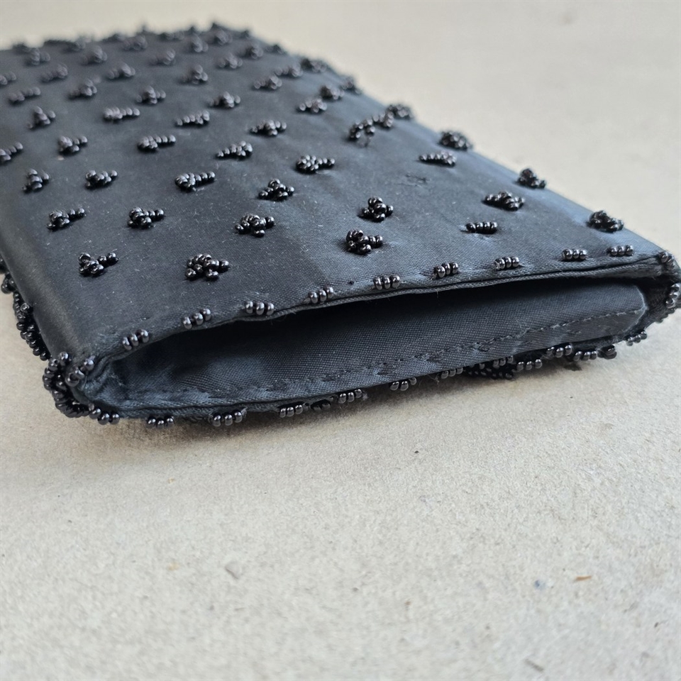 Se elegancen og den tidløse stil med 'Sort perlebroderet aftentaske, vintage kuverttaske', en eksklusiv tilføjelse til enhver garderobe.