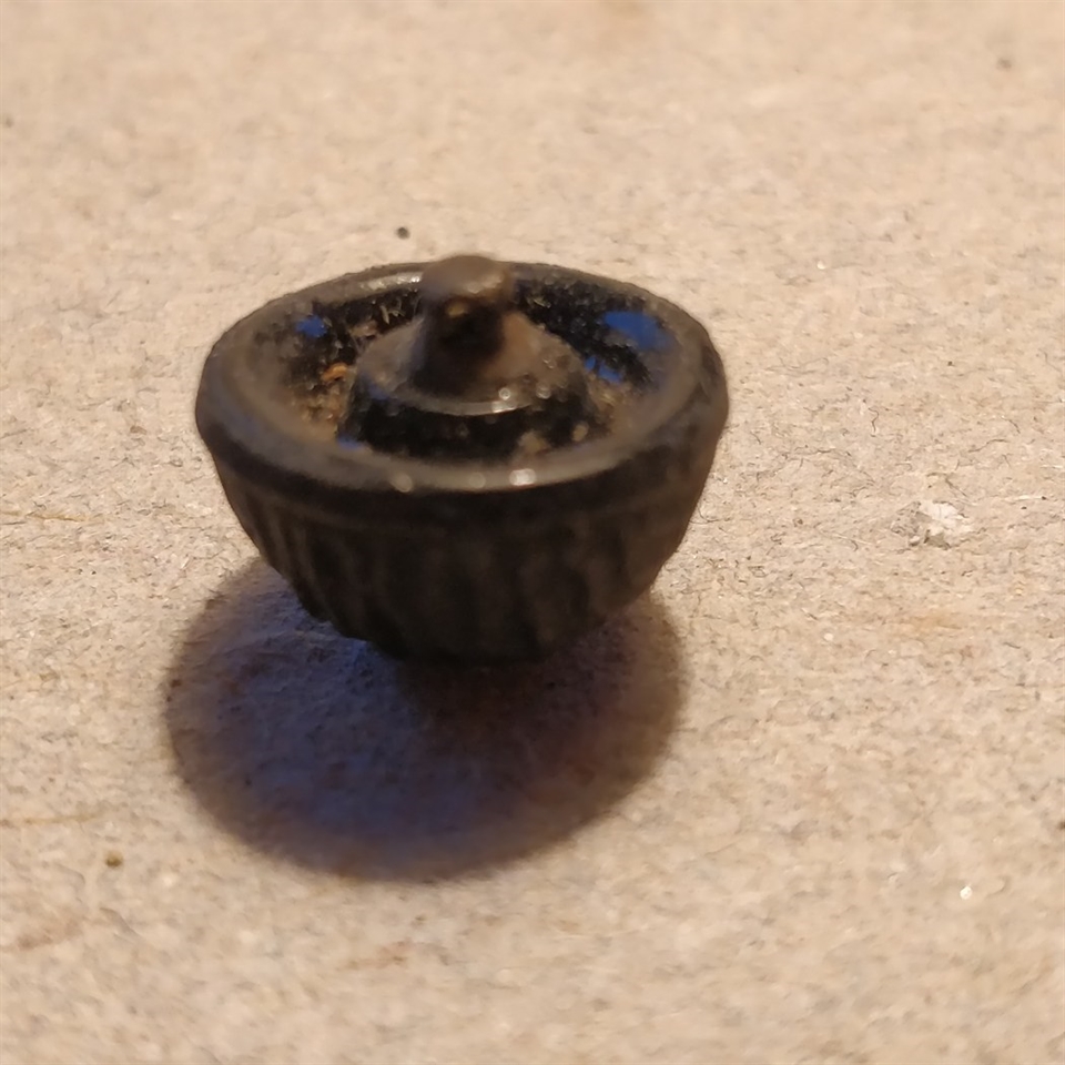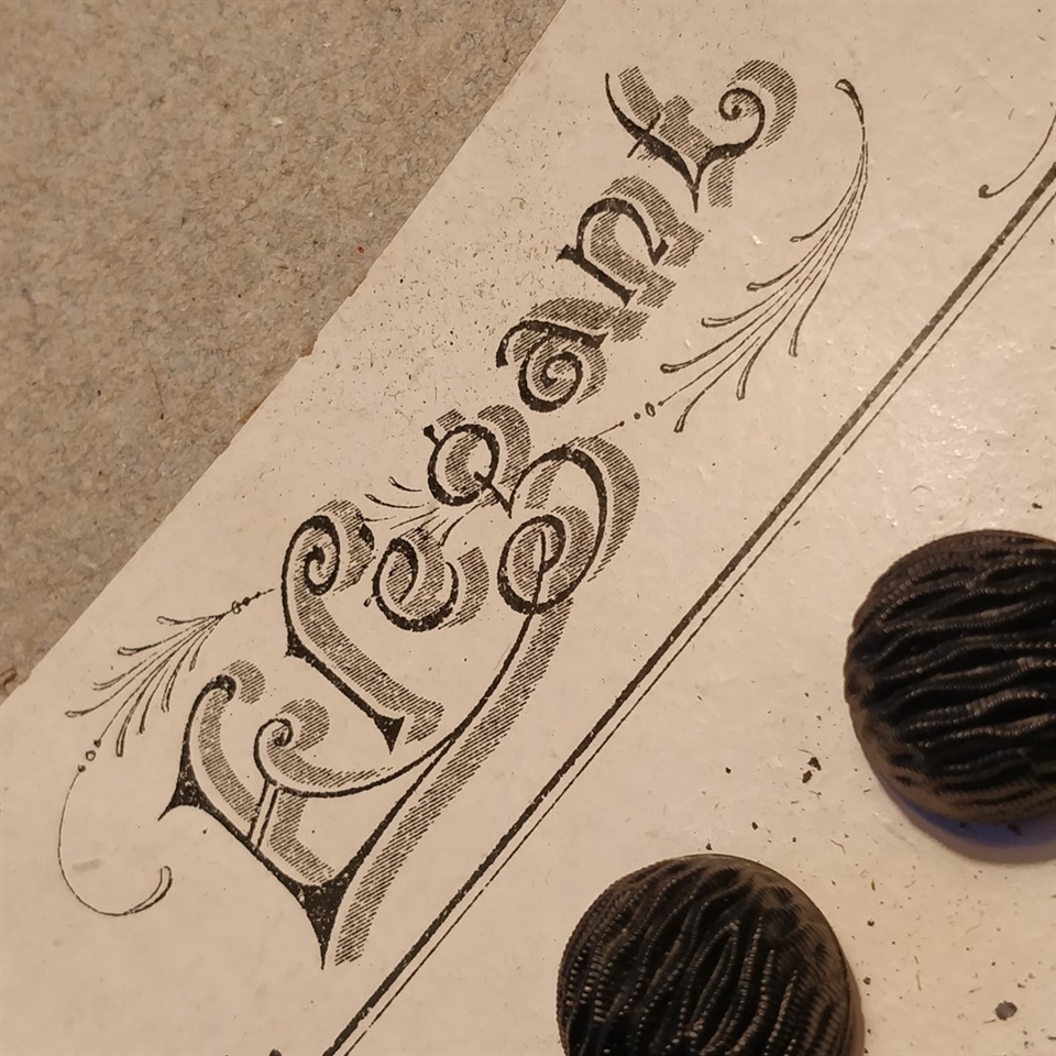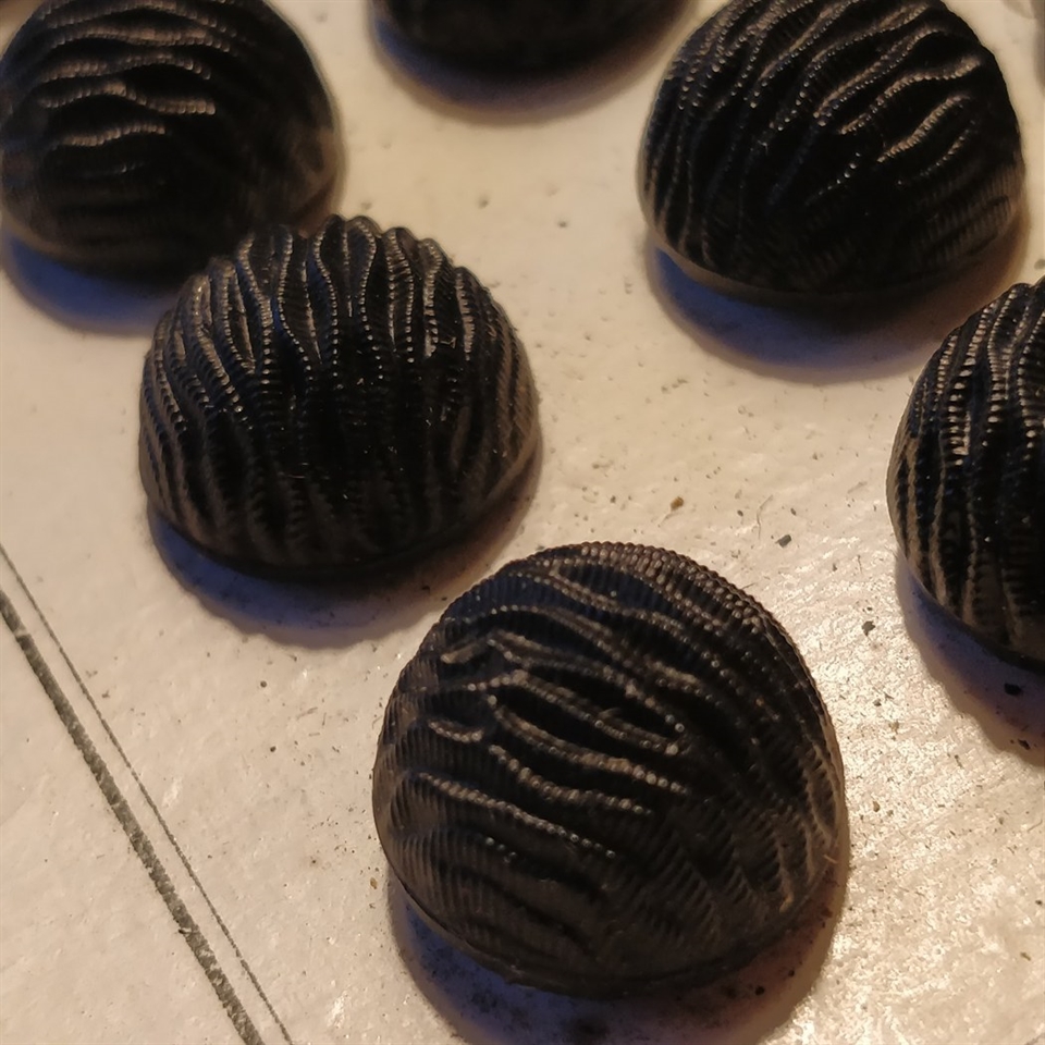 Tilføj en klassisk og øko-venlig detalje til dine designs med vores 'Sorte gamle glasknapper, halvrunde, på ark'.