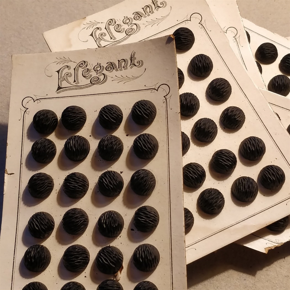 Opdag skønheden og charmen ved vores 'Sorte gamle glasknapper, halvrunde, på ark'.