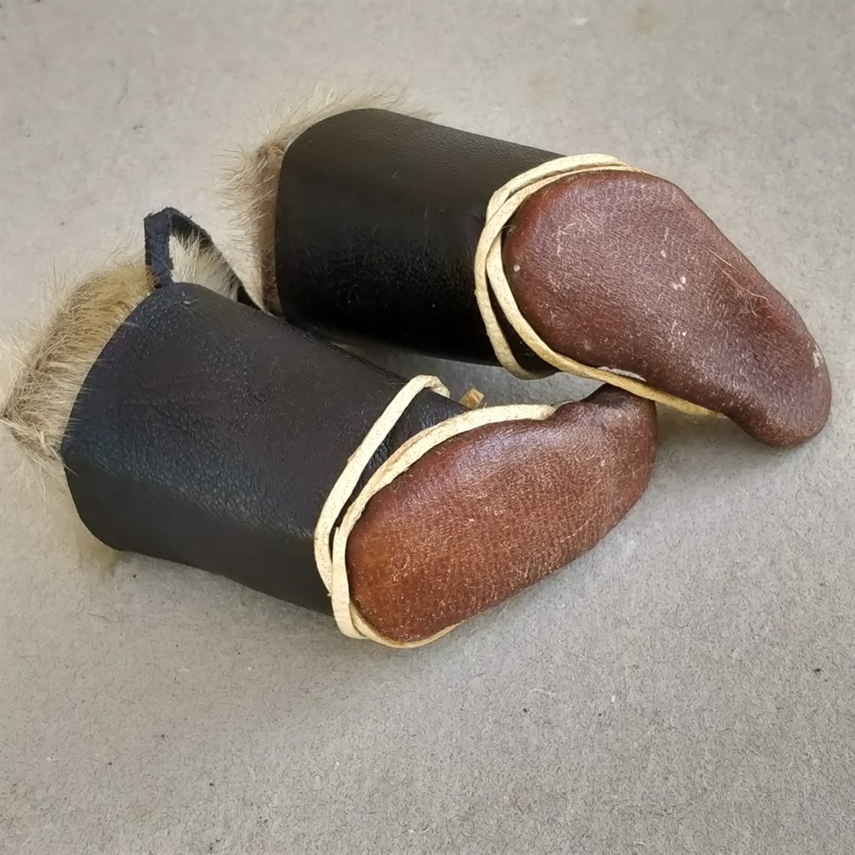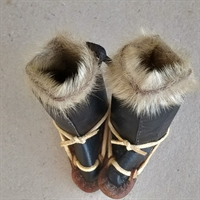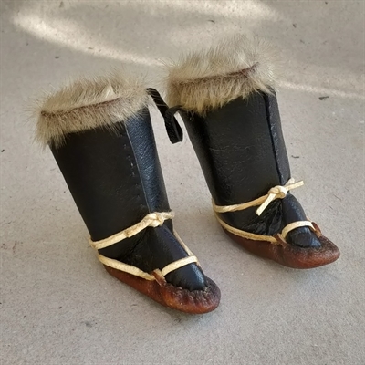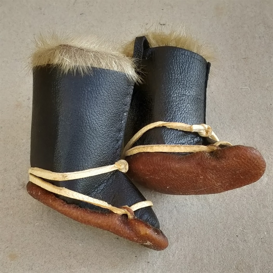 Ideelle som en unik gave eller som en del af en samling, disse sorte skindkamikker med sælskindspels kant er en ægte skat, der bringer et stykke af Grønlands kultur ind i dit hjem.