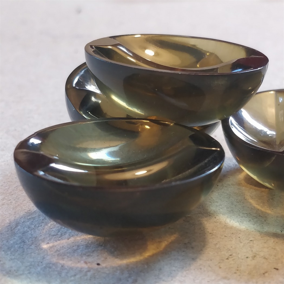 Disse unikke knapper er fremstillet i en iøjnefaldende klar brun nuance og har en buet form, der tilfører en sofistikeret og klassisk flair til enhver frakke eller overtøj.