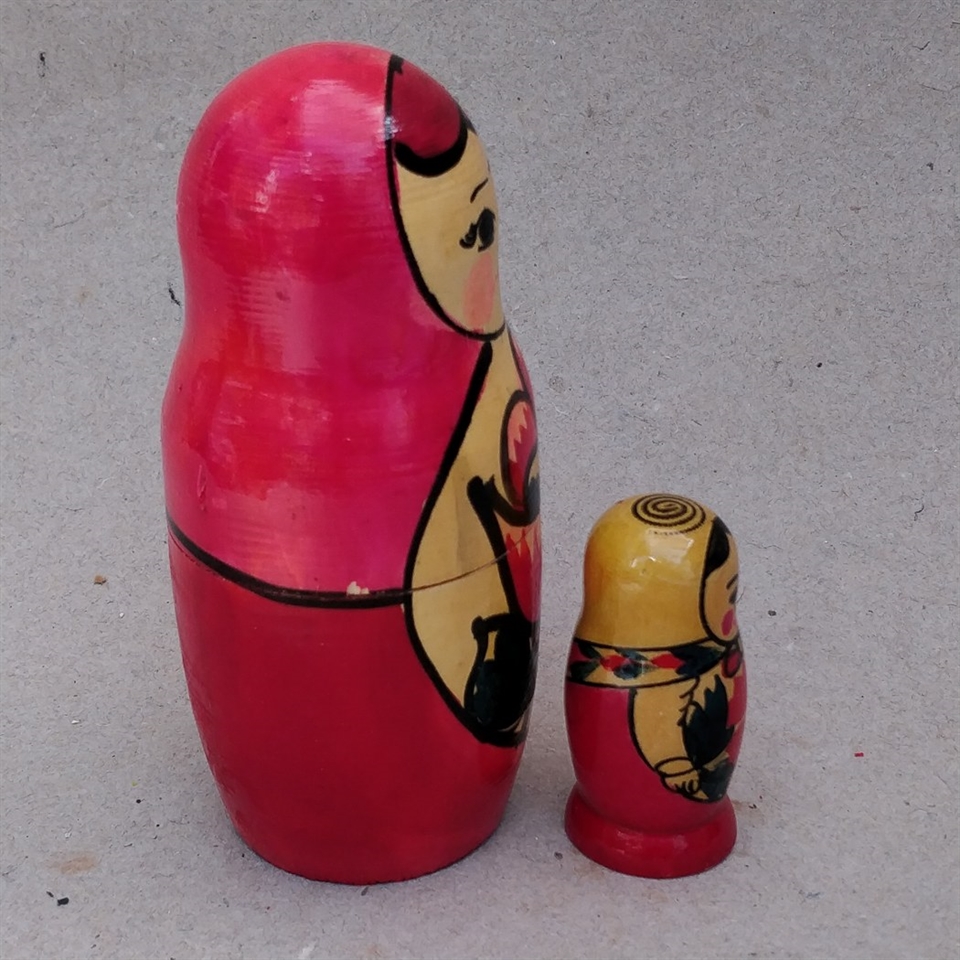 Med højder på henholdsvis 5,5 cm. og 12,5 cm., passer disse charmerende figurer perfekt på enhver hylde, skrivebord eller som en del af din udsmykning i børneværelset. De er ikke bare dekorative – de bærer også på en historie og bringer en snert af den russiske folkekunst ind i dit hjem.