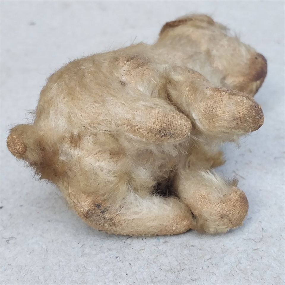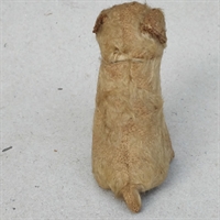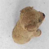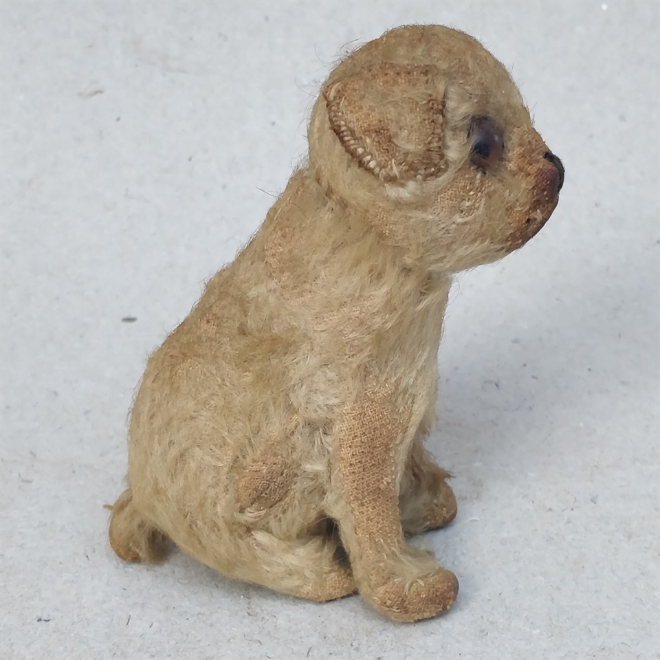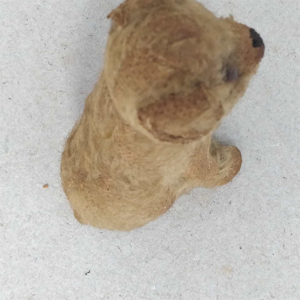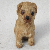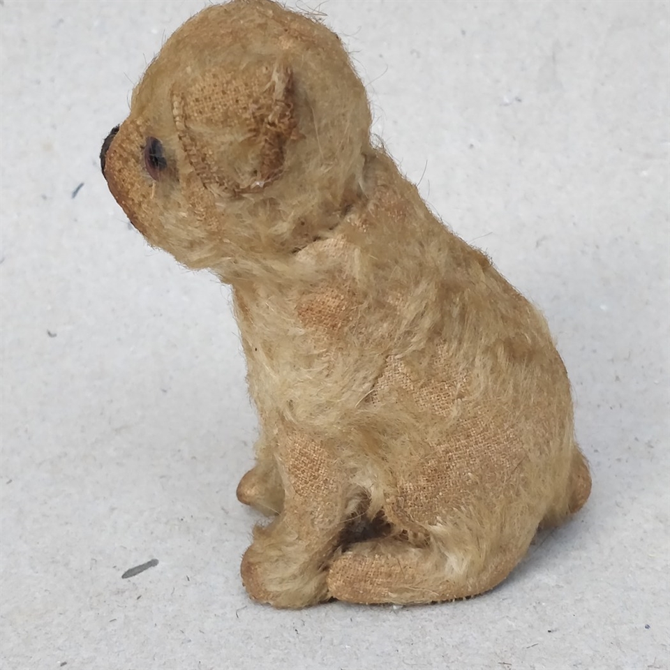 Charmerende Steiff Molly dog fra perioden 1925-1943, en siddende brunlig plys hund, der vil vække nostalgiske følelser og glæde samlere og legetøjsentusiaster.