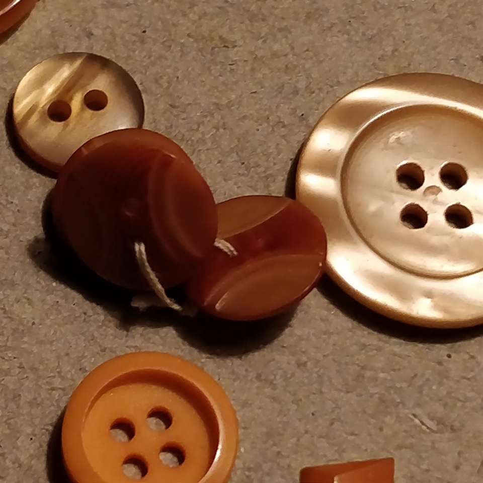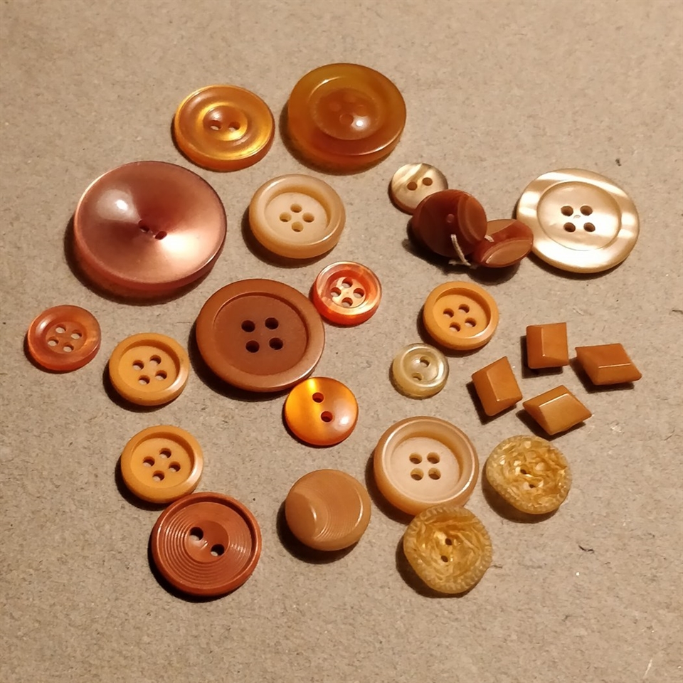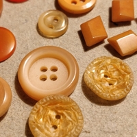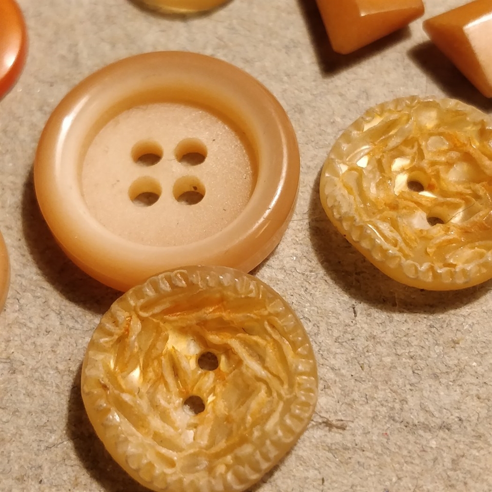 Opgrader dine syprojekter med vores unikke sæt af 25 støvet orangefarvede vintage knapper i plastik.