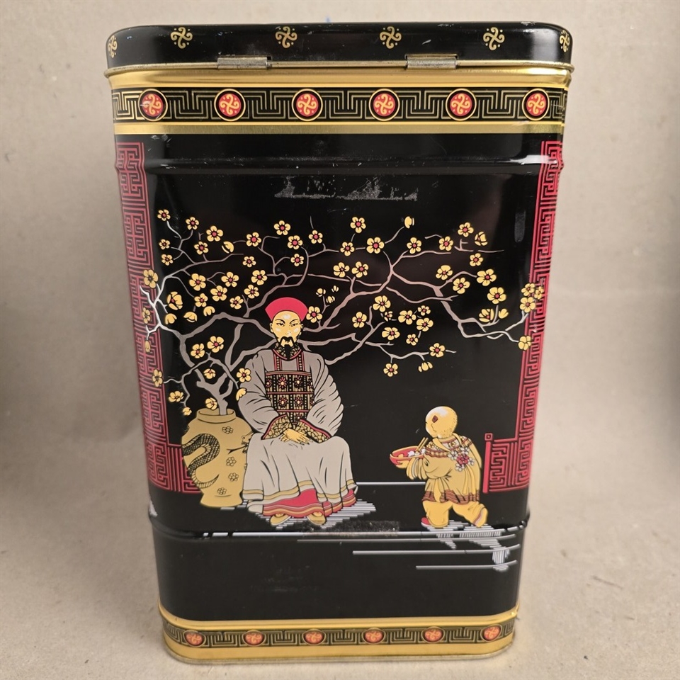 Giv dit te en særlig opbevaringsplads med vores 'Stor retro te dåse', der er udsmykket med smukke kinesiske motiver.