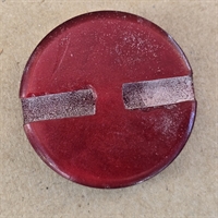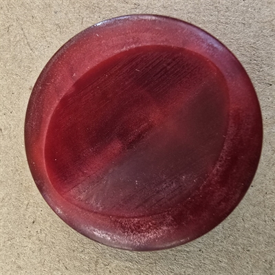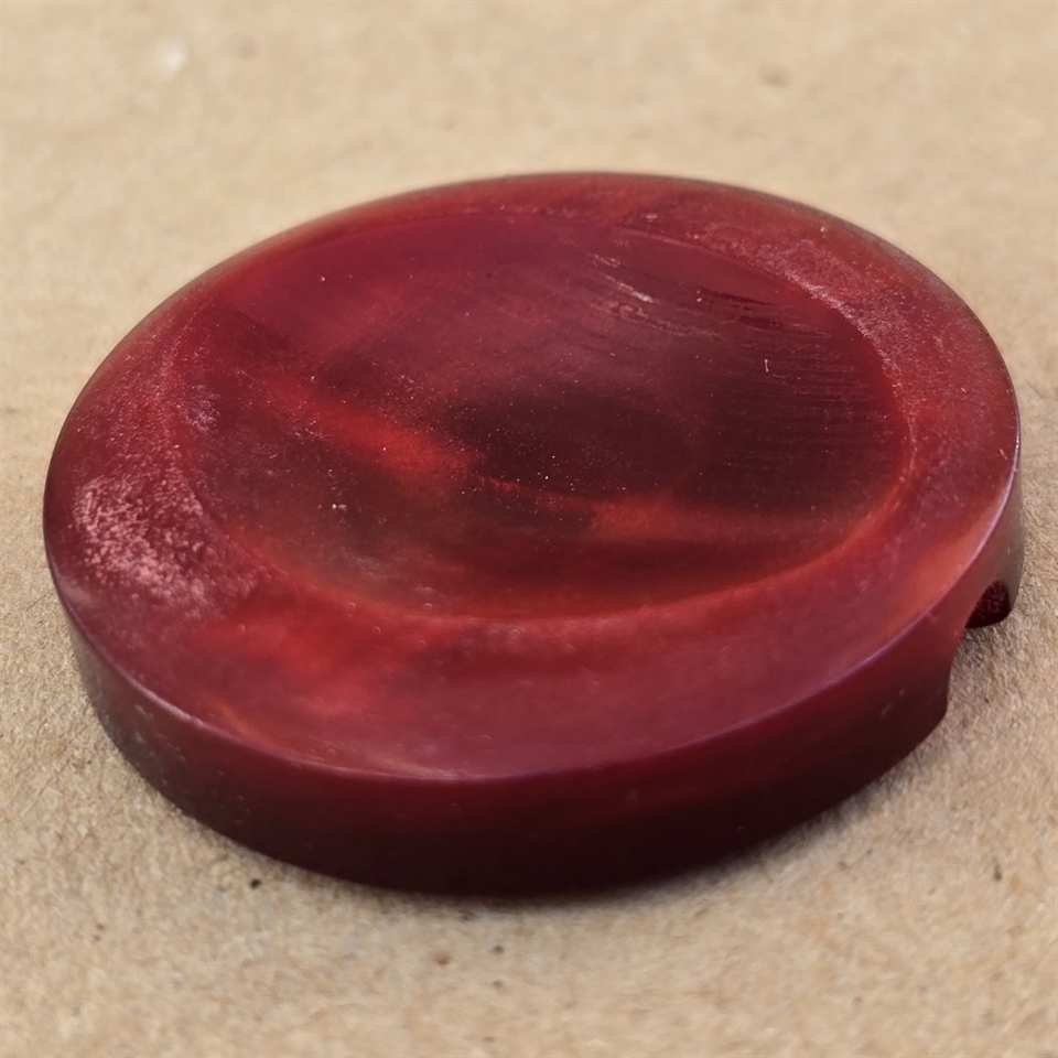 Denne charmerende knap, fremstillet af plastik, måler imponerende 35 mm. i diameter og skinner i en indbydende rødlig nuance, der tilføjer et varmt og indbydende touch til dit tøj.