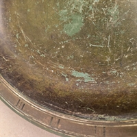 Opdag skønheden og charmen ved vores 'Stort bronze fad, gammelt serveringsfad sign. H.F.' - en ægte skat til dit hjem!