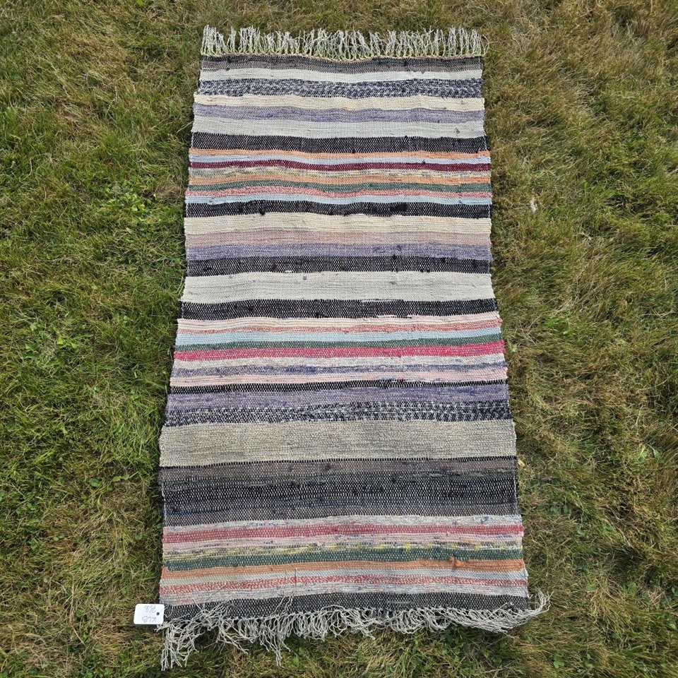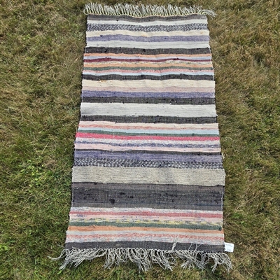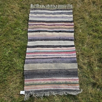 Opdag den charmerende skønhed og autentiske håndværk i vores 'Striber i Blandede Farver, Gammelt Svensk Bomuld Kludetæppe'. Perfekt til at tilføje et strejf af traditionel svensk elegance til dit hjem, dette tæppe måler 64 x 114 cm. og er ideelt til både små og store rum.