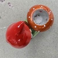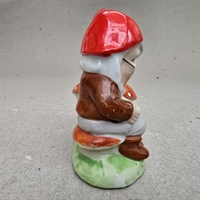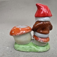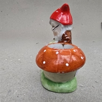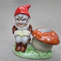 Opdag magien i julen med denne charmerende 'Svampestage med julenisse'! Denne nostalgiske porcelæns julestage tilføjer et strejf af gammeldags julestemning til dit hjem. Forestil dig denne søde lille nisse, der hyggeligt har slået sig ned på en livlig rød fluesvamp, mens han fordyber sig i sin julelæsning. Med en højde på 8,3 cm passer denne unikke lysestage perfekt på enhver hylde eller midt på julebordet.