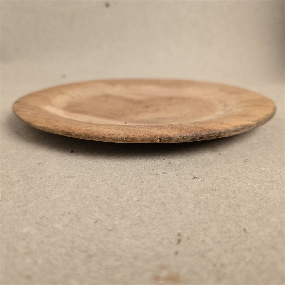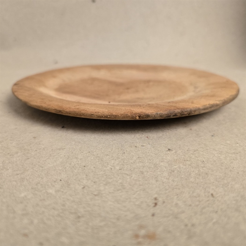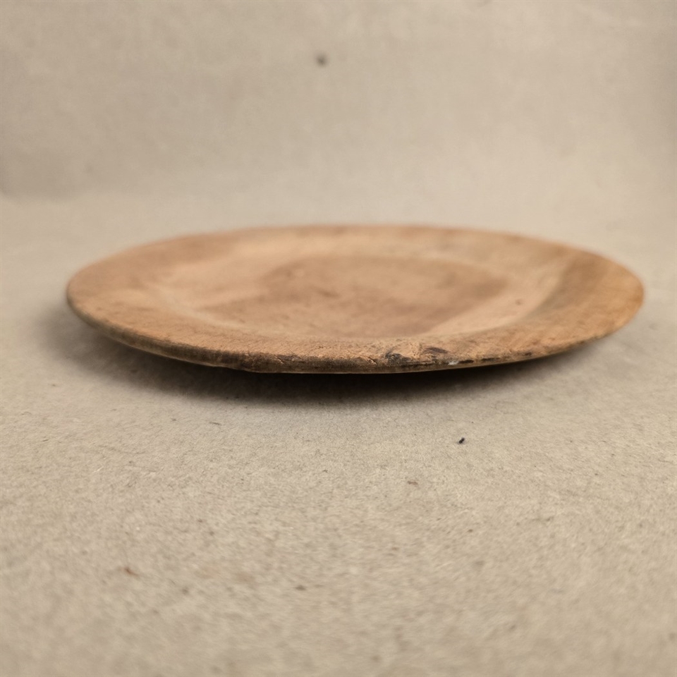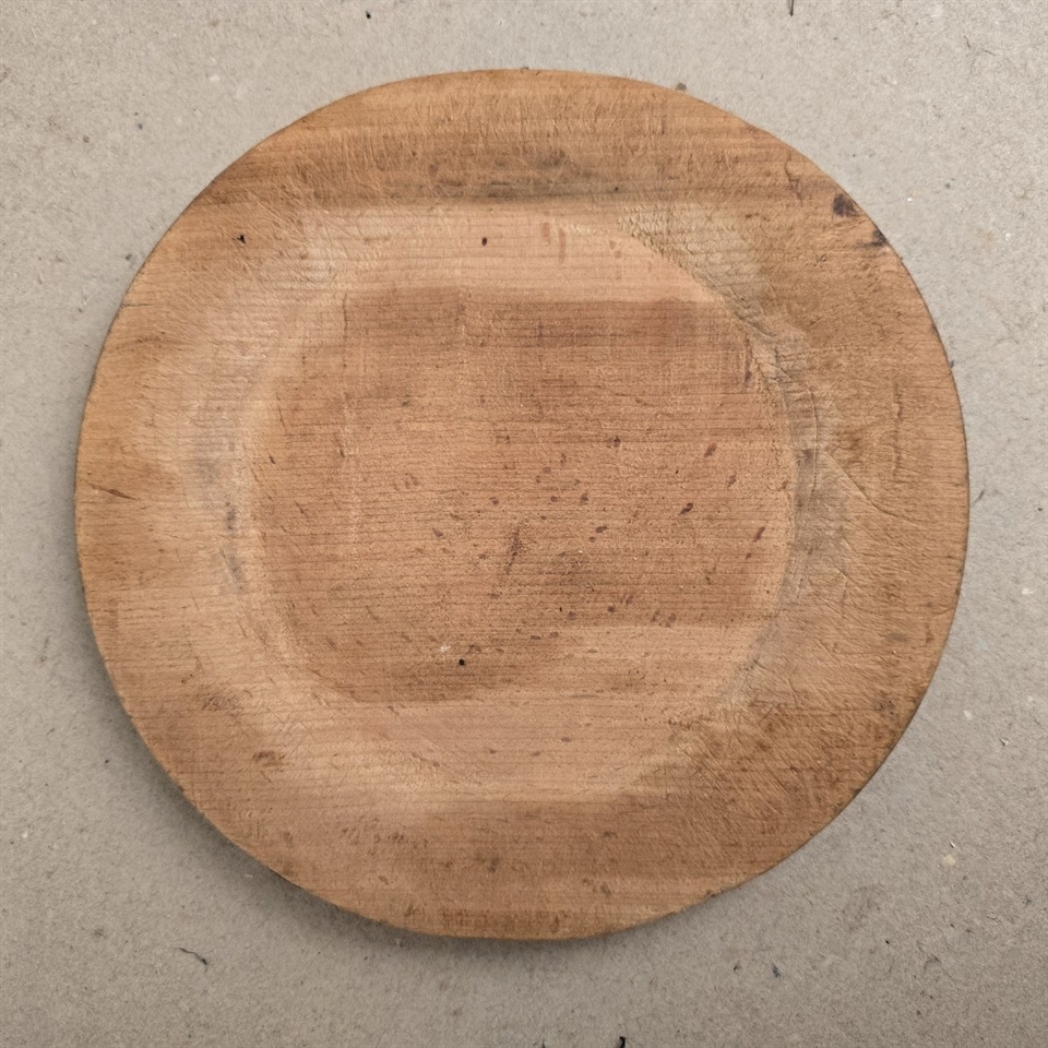 Opdag charmen og skønheden i vores 'Svensk gammel spisetallerken i træ, patineret' - en ægte skat for enhver der værdsætter unikke vintagefund!