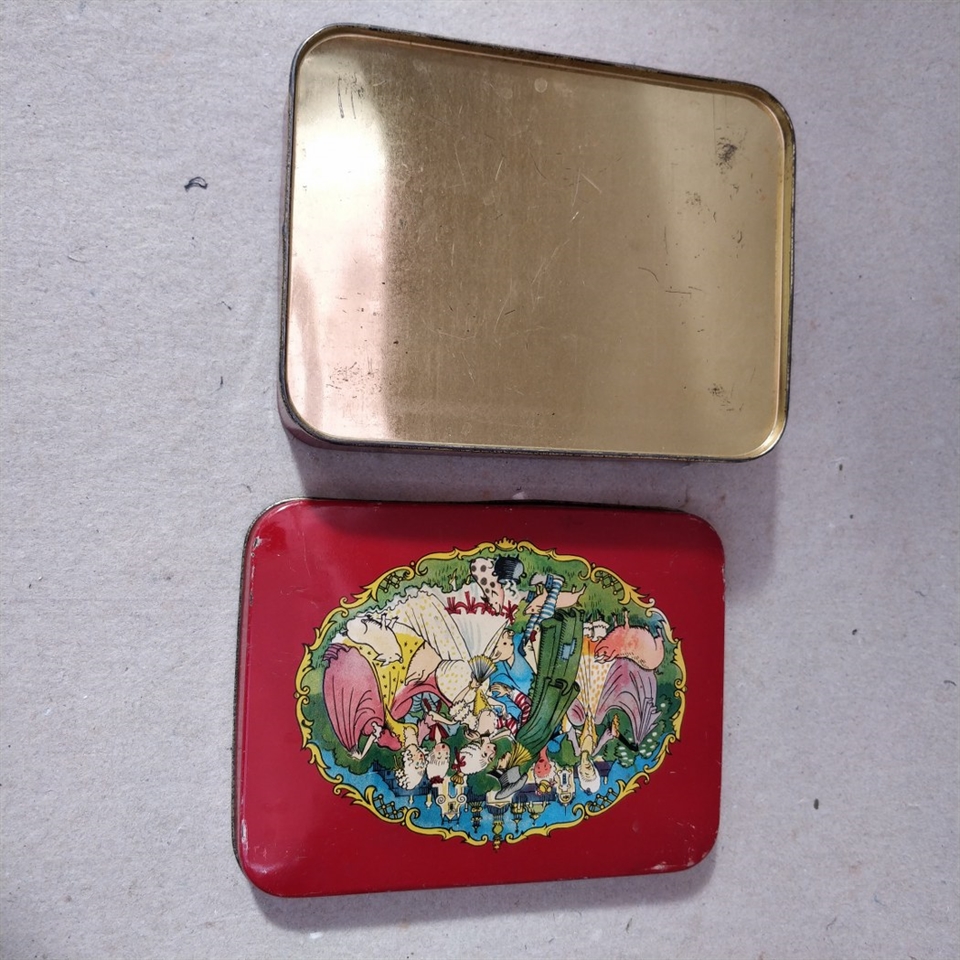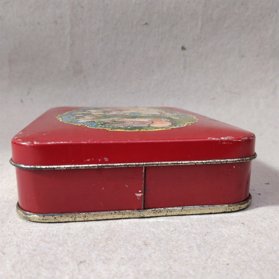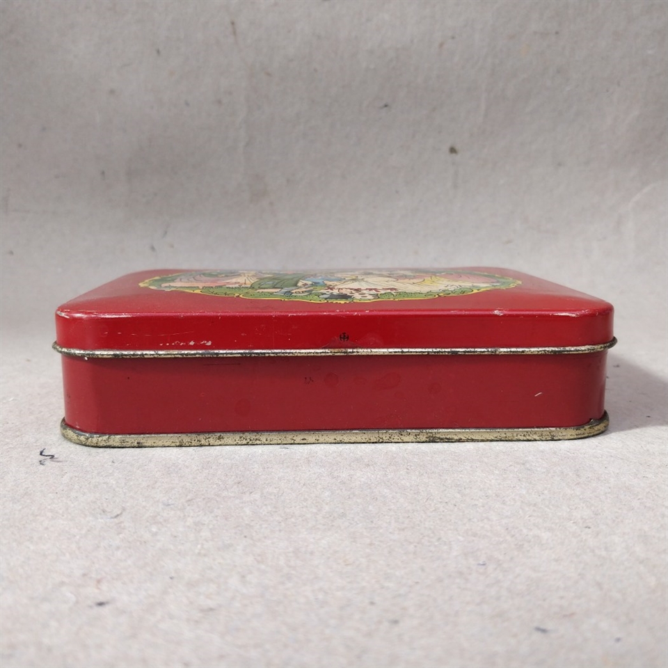 **Produktdetaljer:** - **Mål:** 3,8 cm. i højden, 12 cm. i bredden og 16 cm. i længden, denne æske er rummelig nok til at opbevare små genstande og samtidig kompakt nok til nem placering på hylder eller i skabe. - **Materiale:** Fremstillet af metal, som sikrer lang levetid og beskyttelse af dine genstande mod støv og skader. - **Design:** Æsken præsenterer et iøjnefaldende rødt metallook med nostalgiske illustrationer, der tilføjer en vintage charme til din indretning. - **Anvendelse:** Perfekt til opbevaring af småting som smykker, nøgler, kontorartikler eller som en dekorativ æske til marmelade eller andre køkkenvarer.