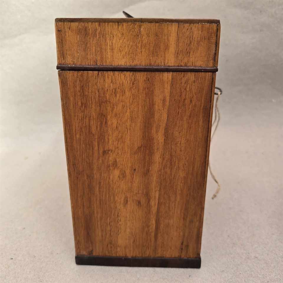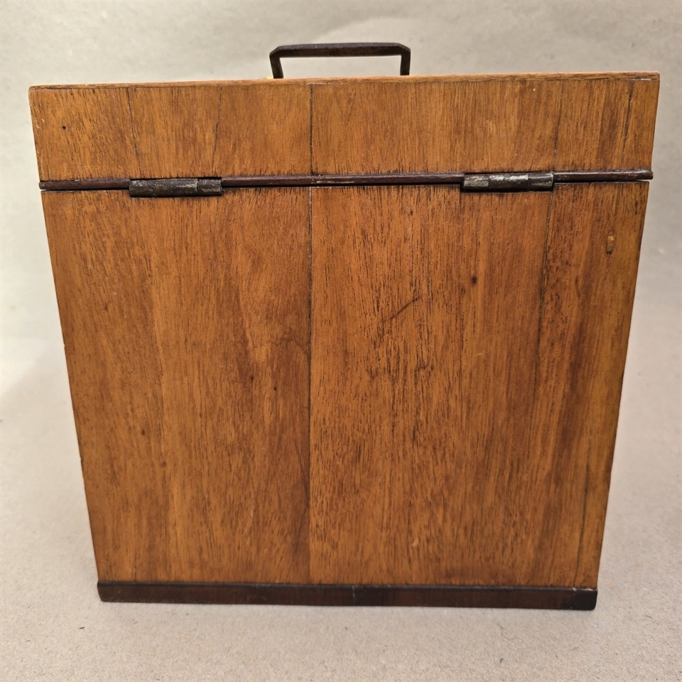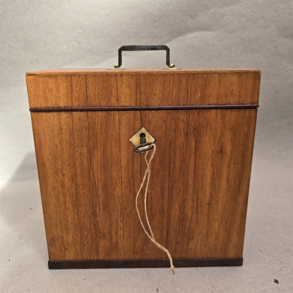 Æsken, udført i fineste træ, måler 27,7 cm. i højden og 22,5 x 12 cm. i bredde og dybde, perfekt proportioneret til at fremvise dens indhold med stolthed. Det håndfremstillede håndtag på toppen tillader let transport. Den integrerede lås ikke blot tilføjer et element af sikkerhed, men også en følelse af mystik og privatliv til dine mest værdsatte spiritus.