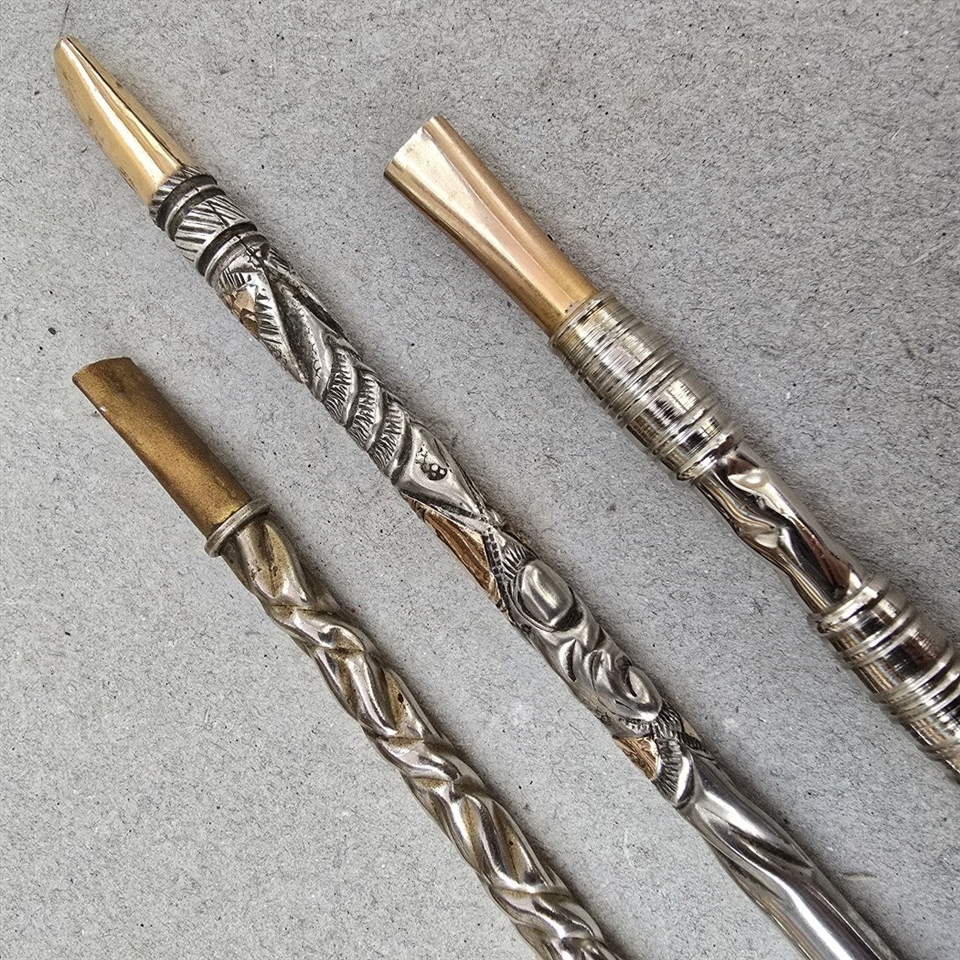 Disse vintage metal sugerør, også kendt som bombilla mata, er ikke kun en fryd for øjet med deres fine dekorationer, men de tilfører også et strejf af historisk elegance til din te-drikning. Perfekt til enhver te-elsker, der værdsætter både funktionalitet og stil.