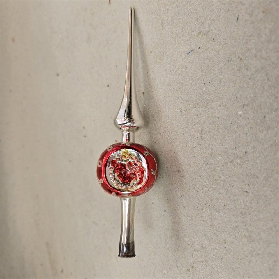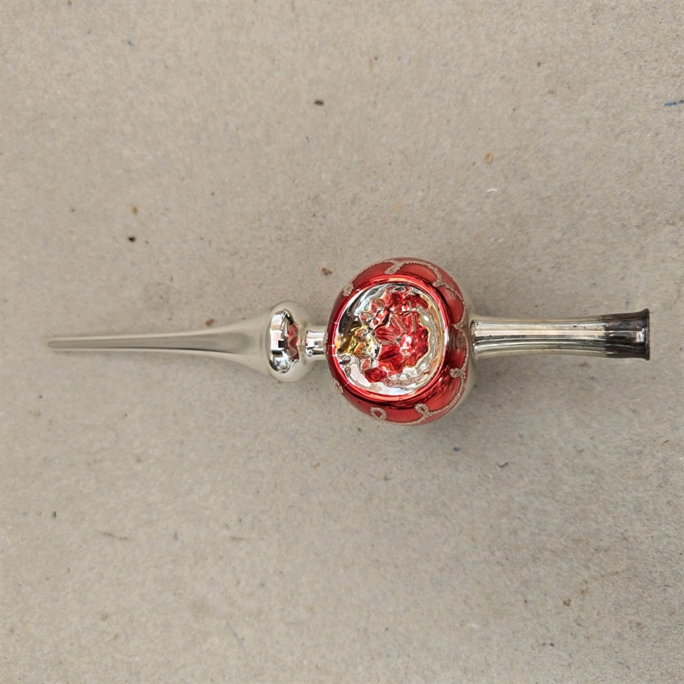 Giv dit juletræ et strejf af nostalgisk charme med 'Topspir, gammel glaspynt til toppen af dit juletræ'.