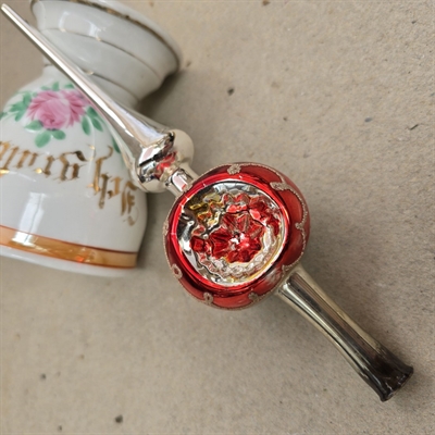 Med sin elegante kombination af sølv og rød, fanger dette 21,5 cm. høje glas-spir ikke blot blikket, men også hjertet.