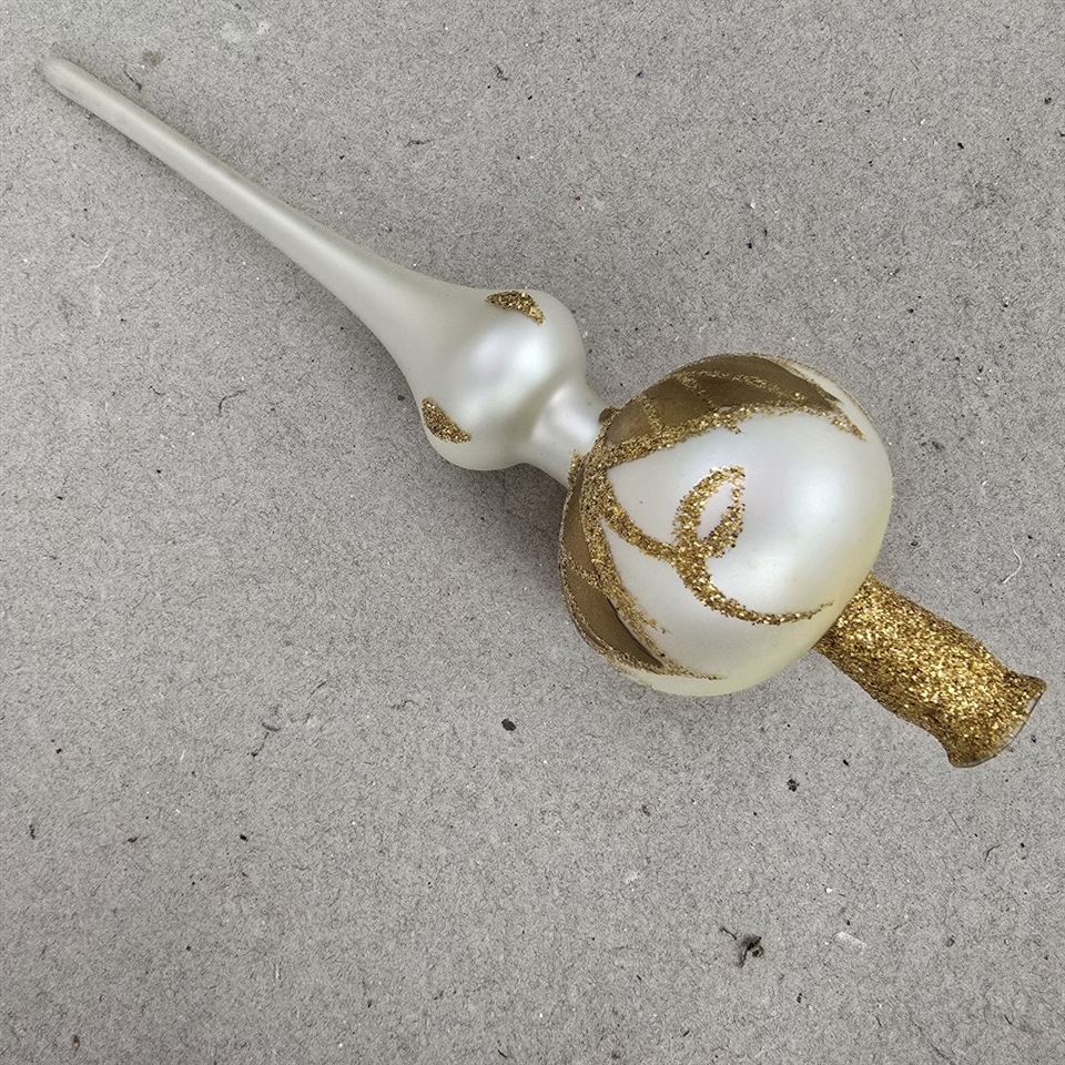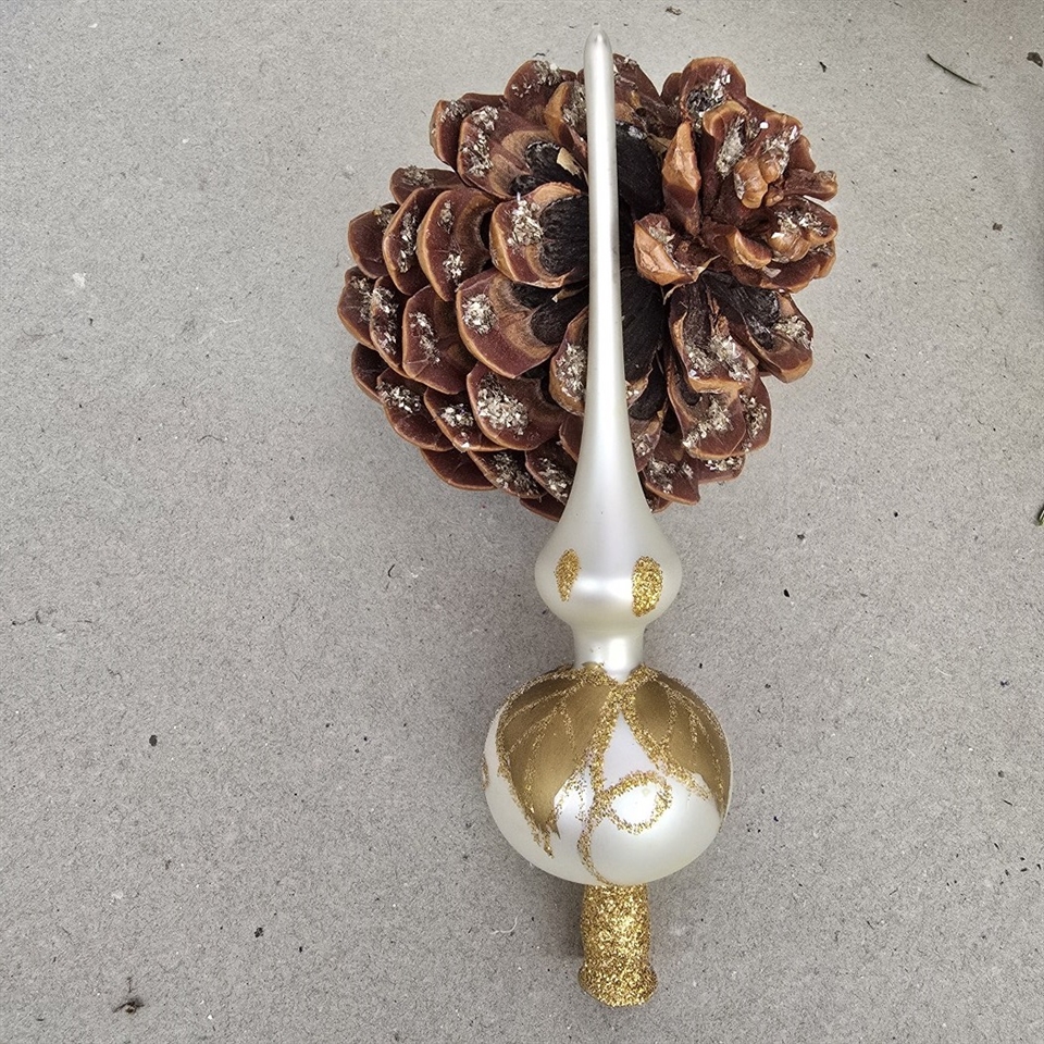 Opgrader din juletræsdekoration med dette charmerende 'Topspir mat creme med guld dekoration'!