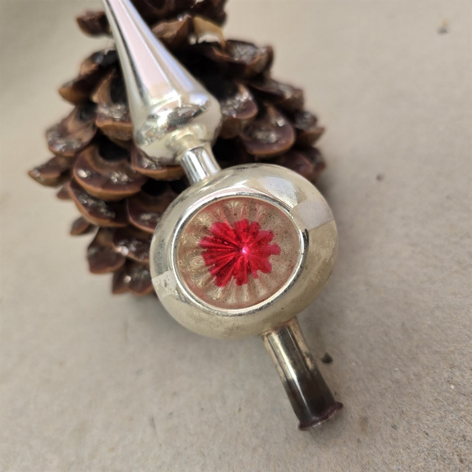 Denne gamle glas juletræspynt er ikke bare en dekoration; det er et stykke historie, der bringer tradition og skønhed ind i dit hjem.