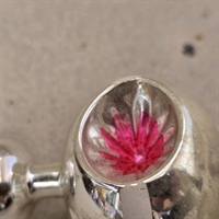 Dette smukke topspir er fremstillet af sølvfarvet glas og er omhyggeligt designet med en pink bund og en fascinerende reflektorspejl, der tilføjer en dybde og glans, som fanger lyset og skaber en betagende effekt.
