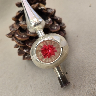 Topspiret måler 23,5 cm. i højden og er dekoreret med to spejldekorationer, der reflekterer julelysene på en måde, der virkelig bringer julestemningen til live.