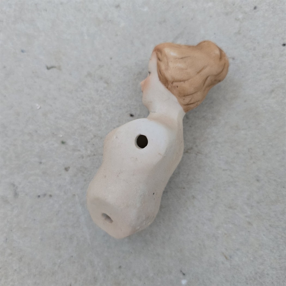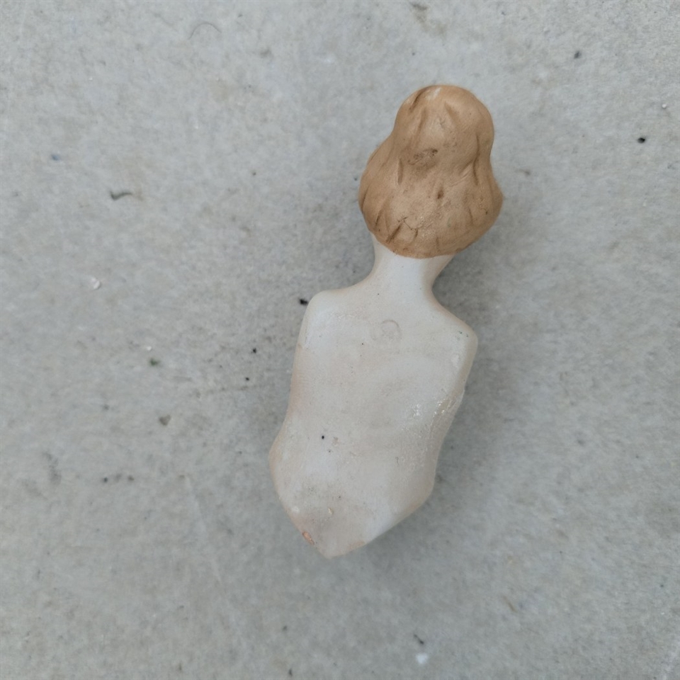 Denne dukketorso måler 8,5 cm. i længden, hvilket gør den ideel til display i et vitrineskab eller som en del af en større samling.
