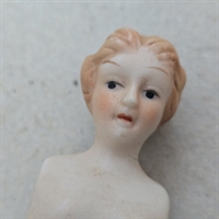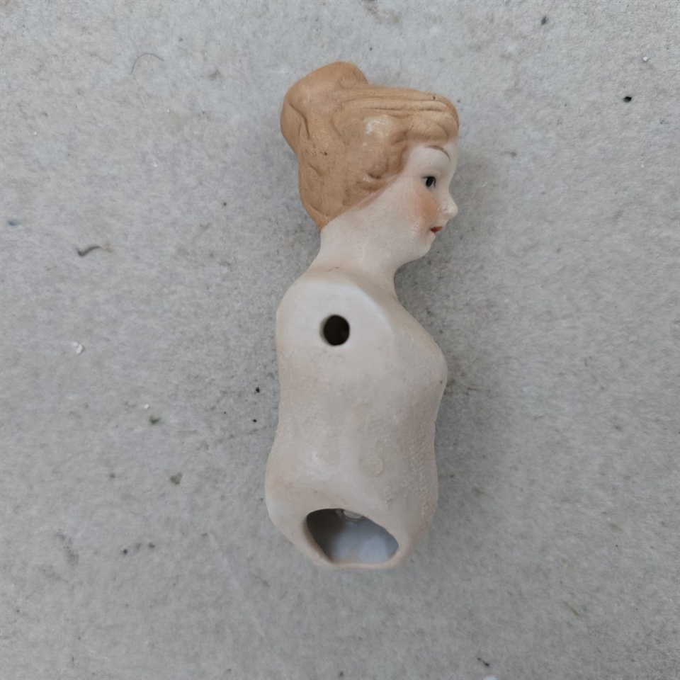 Opdag charmen og skønheden i vores unikke 'Torso porcelæn dame med opsat hår gammel dukketorso'. Dette eksklusive samlerobjekt er en sand perle for enhver, der værdsætter antikviteter og fine detaljer.