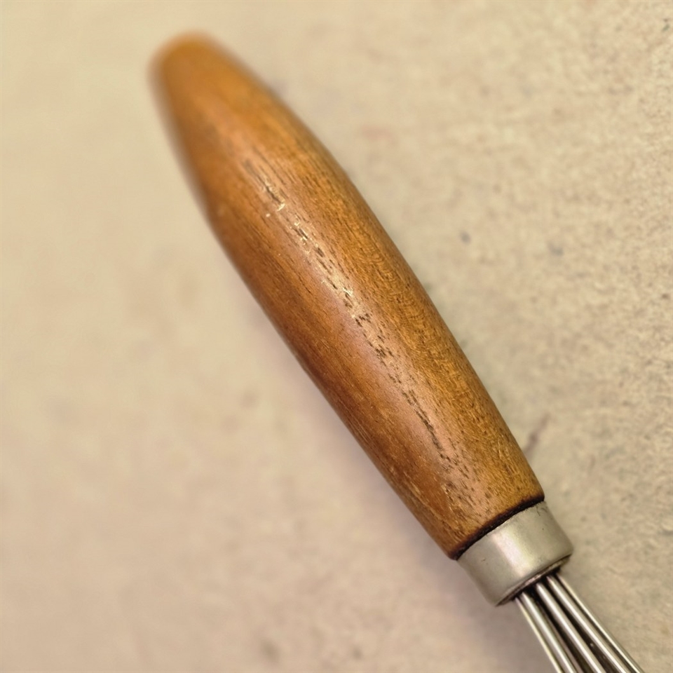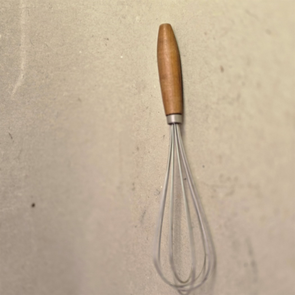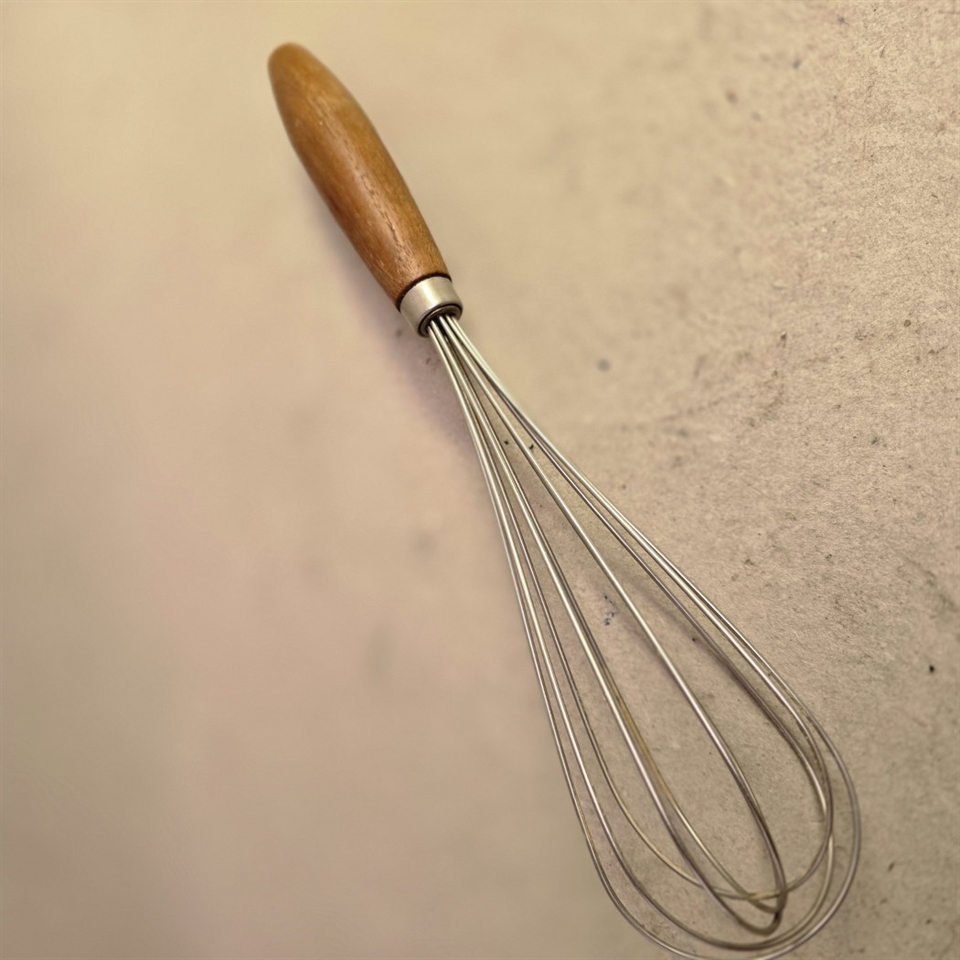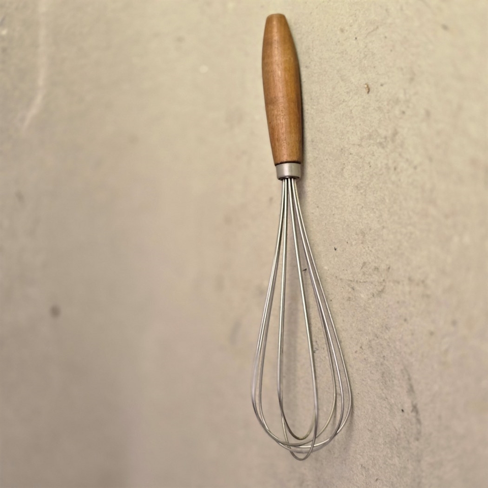 Med sit elegante træhåndtag tilbyder dette piskeris et fast og behageligt greb, der gør det nemt og sikkert at arbejde i køkkenet. Om du skal piske flødeskum til kagen eller røre dressingen til salaten, hjælper det robuste metalhoved dig med at opnå den perfekte tekstur hver gang.
