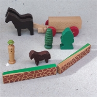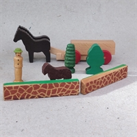 Dette sæt består af håndlavet trælegetøj, der bringer en klassisk følelse ind i enhver legekasse.