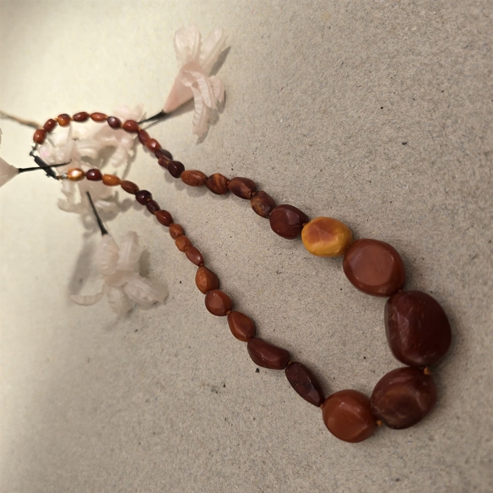 Vores Tromlepoleret ravhalskæde er mere end bare et smykke; det er et stykke kunst, der bringer historie og natur tættere på dig.