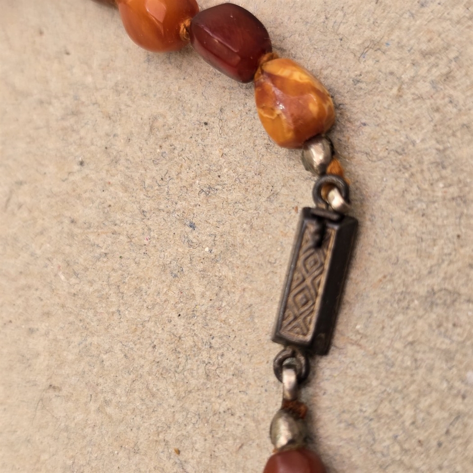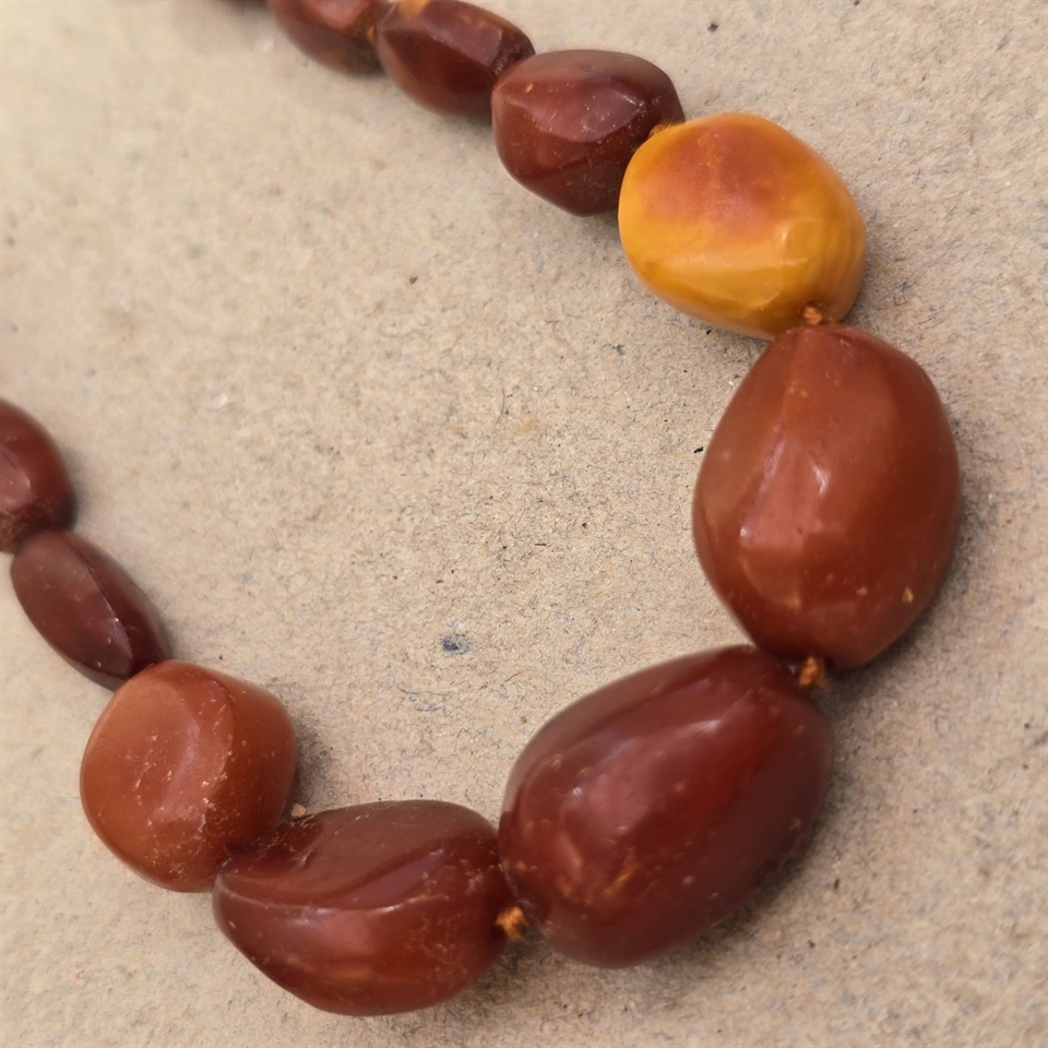 Oplev den tidløse skønhed og elegance med vores "Tromlepoleret ravhalskæde i forløb med sølvlås".
