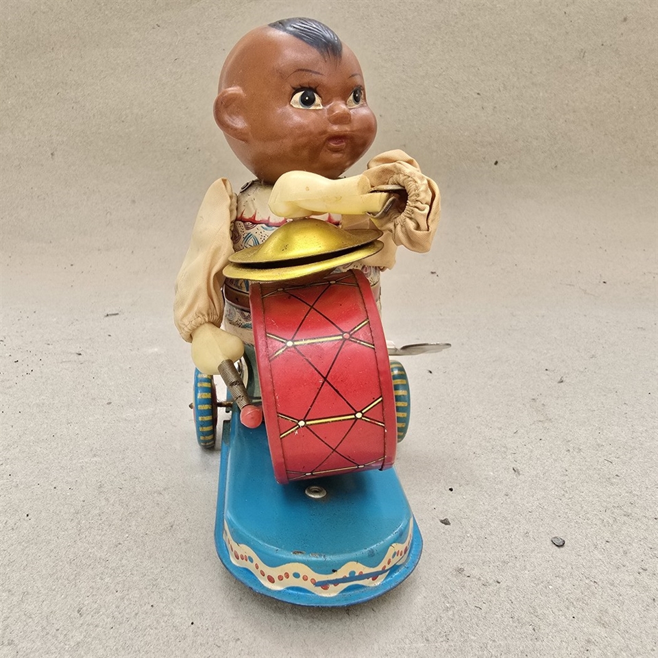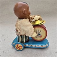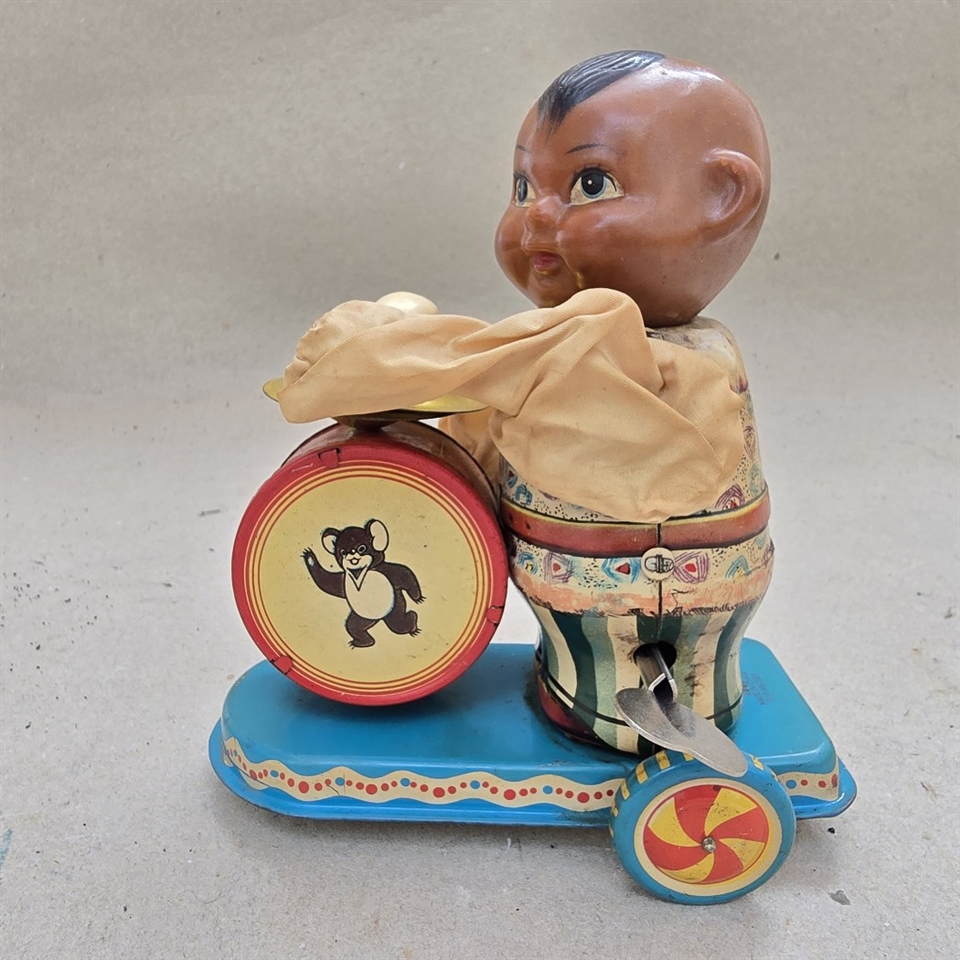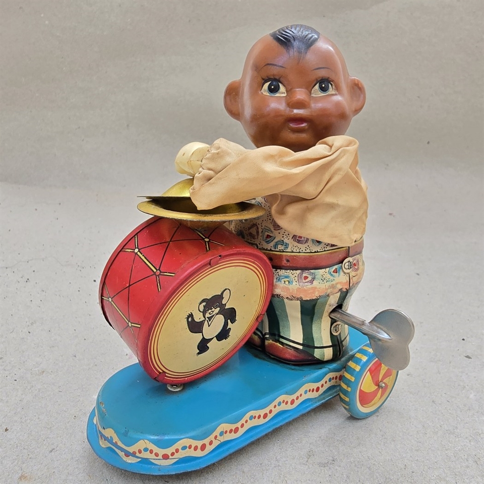 Ved blot at trække legetøjet op, begynder trommedrengen livligt at tromme, mens han kører fremad på sine små hjul. Denne fascinerende bevægelse ikke alene fanger øjet, men vækker også glæde og fascination hos både børn og voksne.