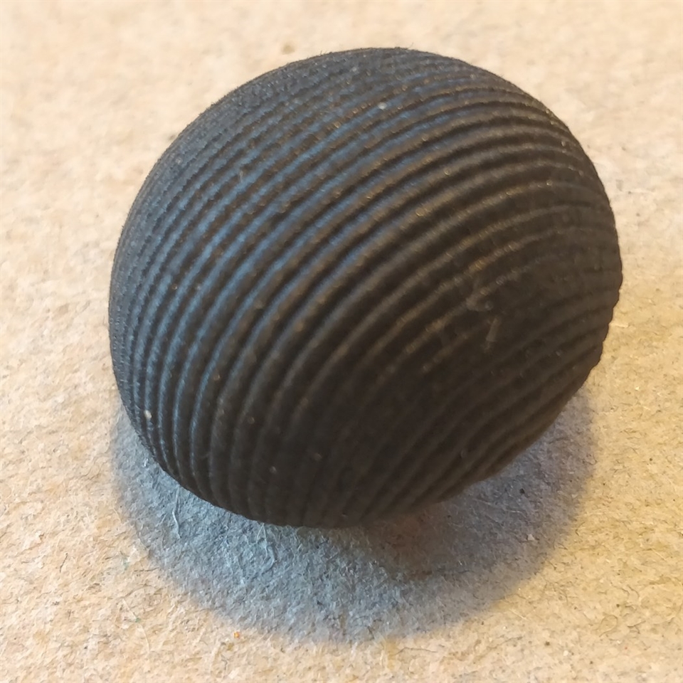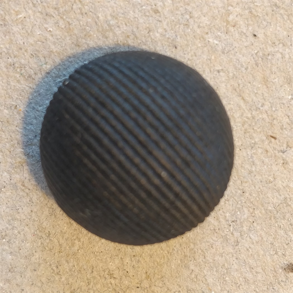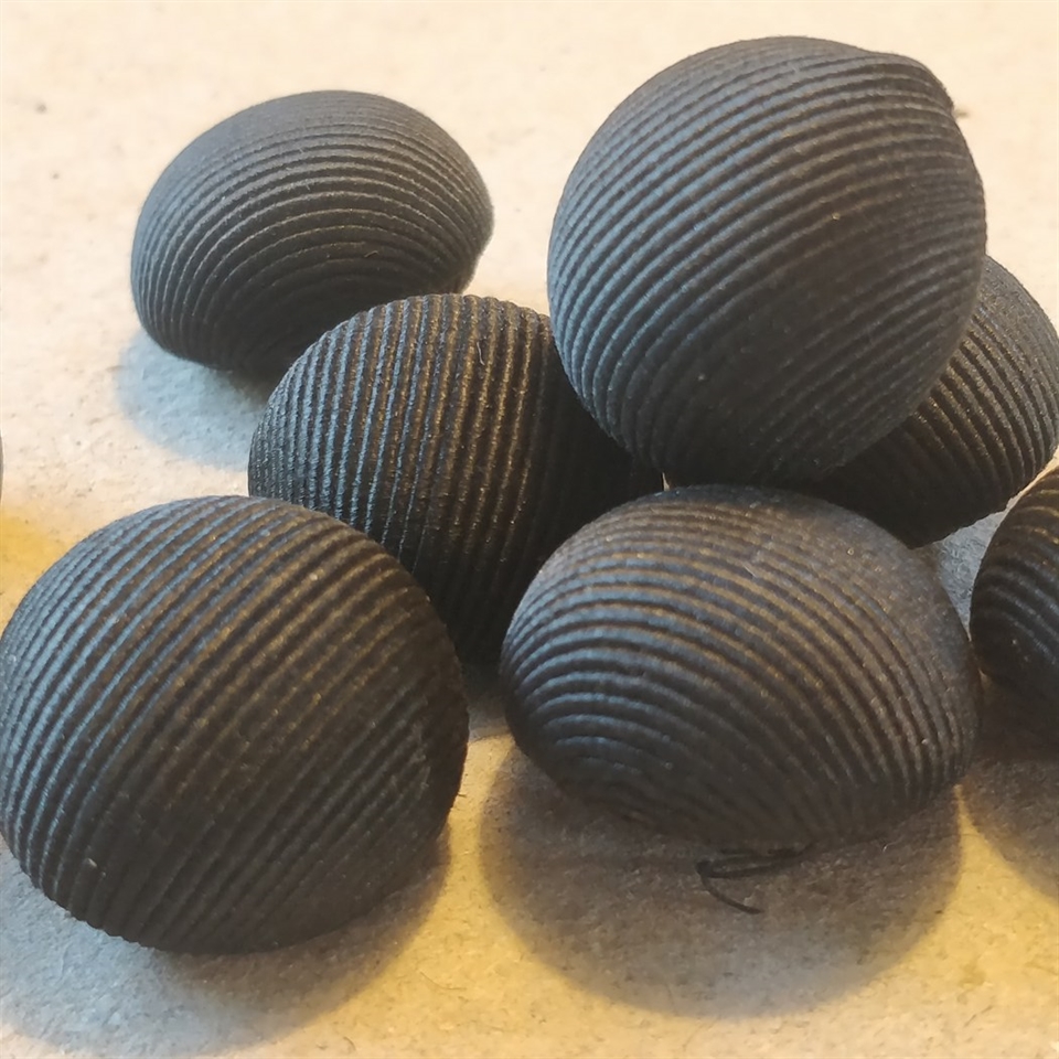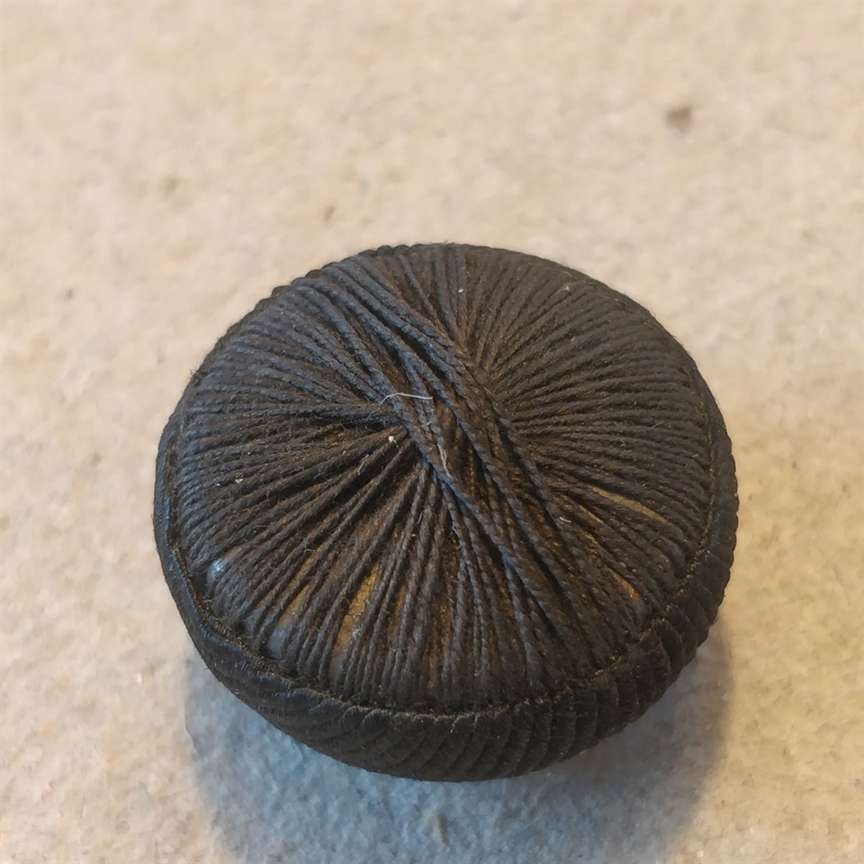 Den halvkugleformede possement knap fremstår i en dyb sort farve, der tilføjer en sofistikeret og tidløs elegance.