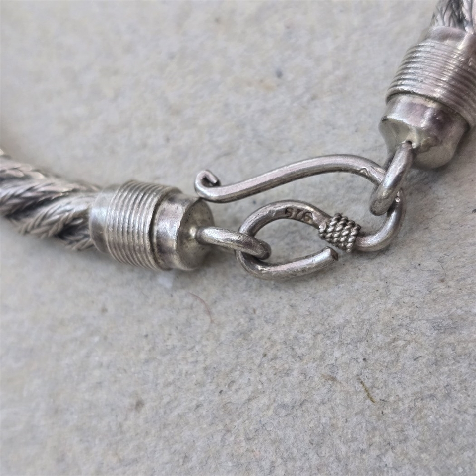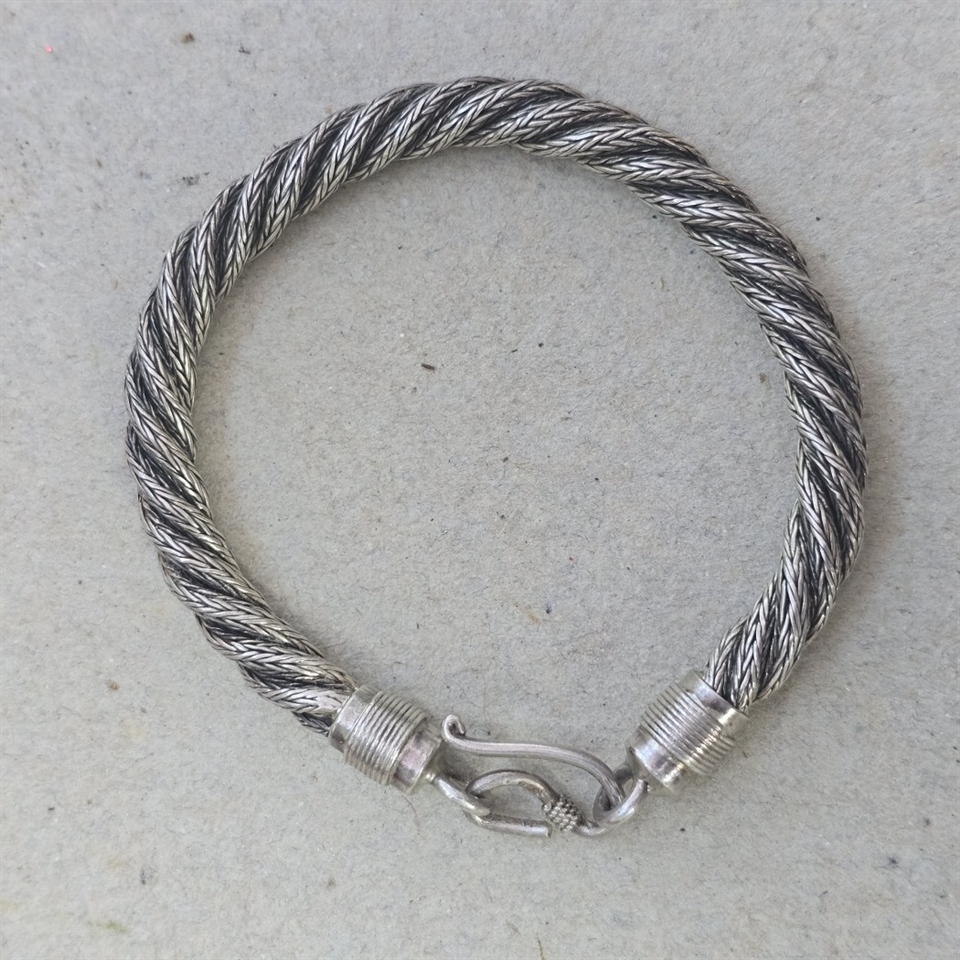 Opdag det elegante og tidløse design med vores 'Tykt snoet sølv vintage armbånd'.