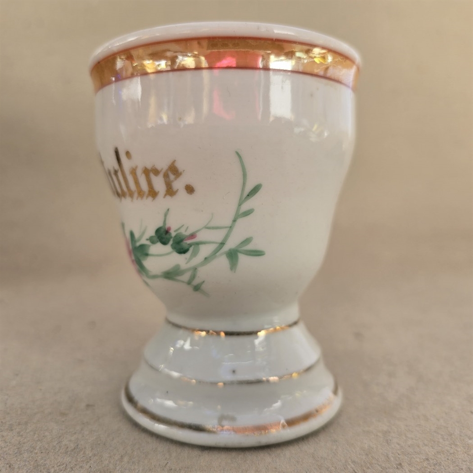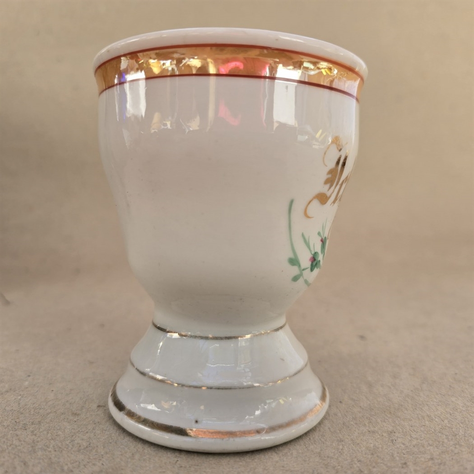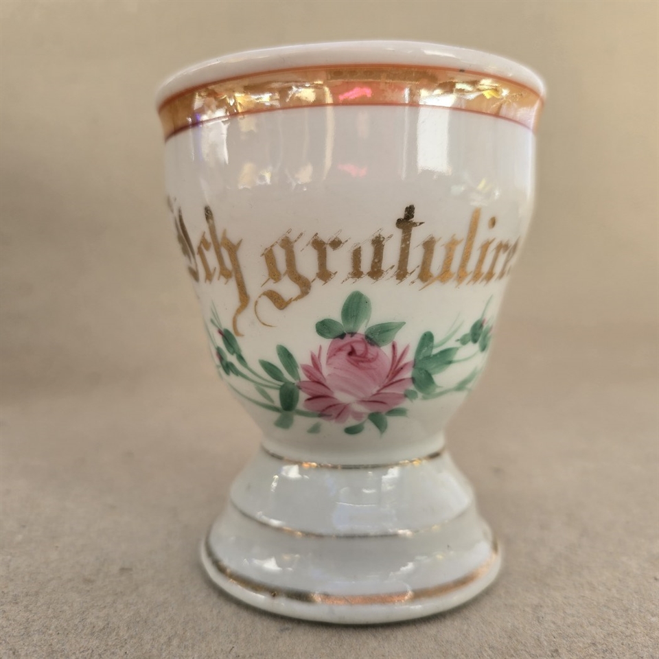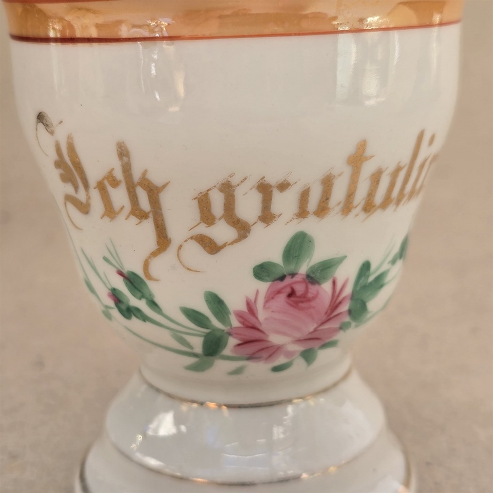 Opdag charmen og elegance med vores 'Tysk gammelt kakaokrus'! Dette unikke stykke er mere end bare et krus - det er et stykke historie. Fremstillet i fineste porcelæn, står dette krus på en graciøs fod, hvilket tilføjer et strejf af klassisk skønhed til din samling.