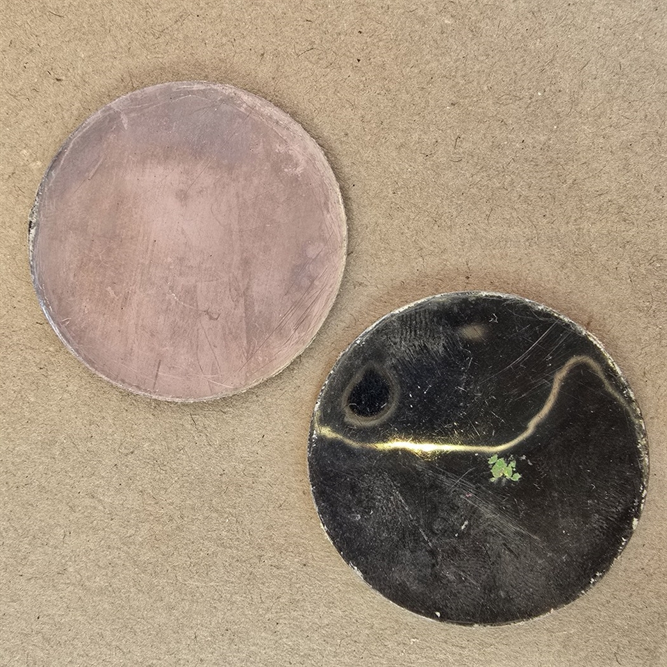 Disse unikke samlerobjekter består af to smukt dekorerede emaljeplader der endnu ikke er blevet brændt, hver med en diameter på 4,2 cm.