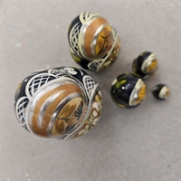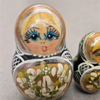 Hver dukke er omhyggeligt malet i elegante sølv, grå og hvide farver, hvilket tilføjer et moderne twist til deres traditionelle russiske arv.