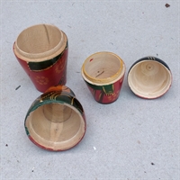 Hver dukke er omhyggeligt fremstillet til at være delbar, så den mindre dukke kan gemmes sikkert indeni den større, hvilket er klassisk for matryoshka-dukker.