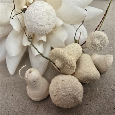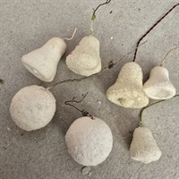 Med i sættet finder du syv dele, inklusive sukkerpyntede klokker og kugler samt den yndige vat klokke, der måler 2,7 cm. i højden.