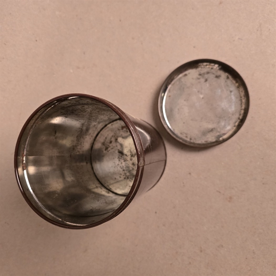 Med en højde på 17 cm. og en diameter på 11,2 cm. er denne rundformede metaldåse både praktisk og dekorativ, perfekt til opbevaring af din yndlingskaffe.
