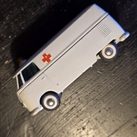 Opdag nostalgi og sjov med Tekno's Volkswagen Rugbrød Ambulance Modelbil! Denne charmerende modelbil er en tro kopi af den klassiske Volkswagen Rugbrød, omhyggeligt omdannet til en livlig ambulance.