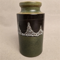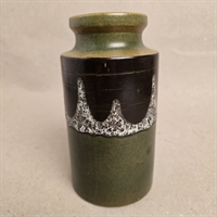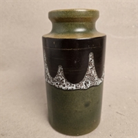 Vasen er udført i en attraktiv kombination af brun og grøn glasur, der skaber en varm og indbydende atmosfære i ethvert rum. Med en højde på 19 cm. er den ideel til at fremvise dine yndlingsblomster, og dens cylindriske form giver et moderne præg på det retro design.