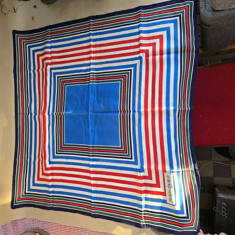 Opdag elegance og tidløs stil med dette vintage silketørklæde fra Yves Saint Laurent.